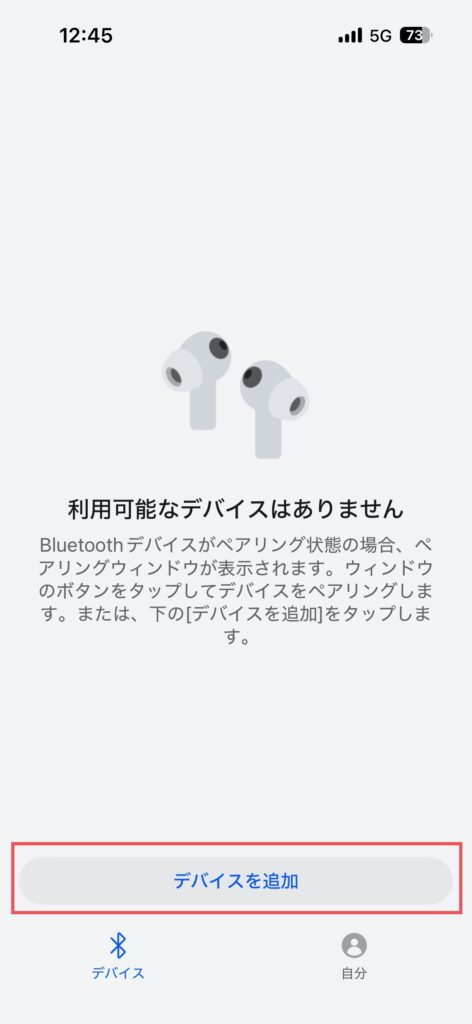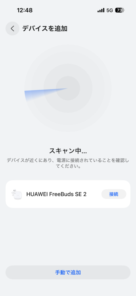 ↑「Huawei Audio」というアプリを取って、ペアリング後ケースを開いて下部の「デバイスを追加」を押すと